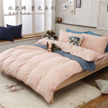 【R.Q.POLO】素色水洗棉-粉色 雙人標準薄被套床包四件組(5X6.2尺)